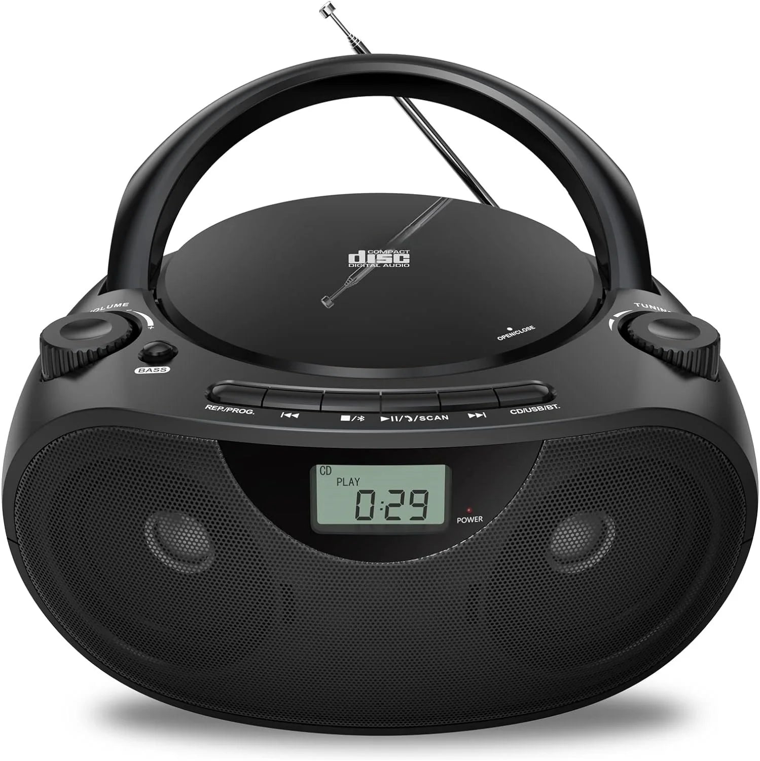Portable Stereo CD Player Boombox with AM/FM Radio, Bluetooth, USB, AUX-in, Headphone Jack, CD-R/RW and MP3 CDs Compatible for All Music
